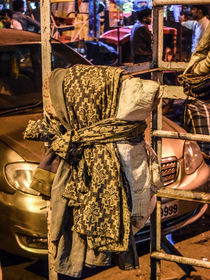 The objects attached by daily wages laborers on the pole, side on the street, at Delhi and Marseille.